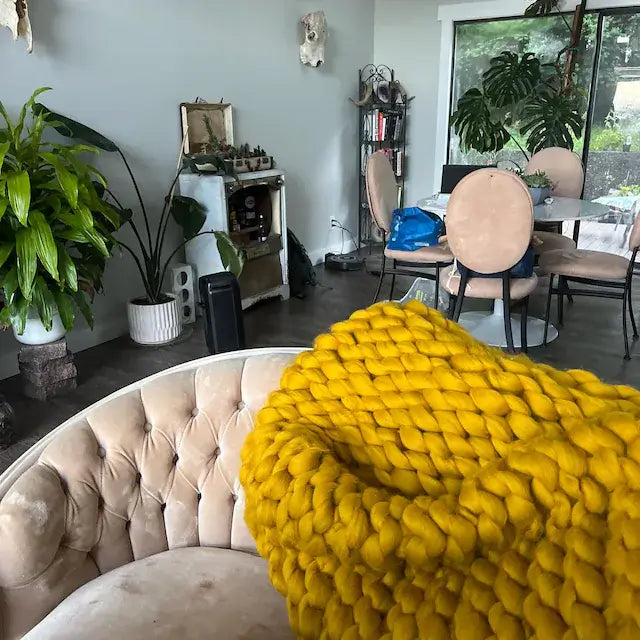 I am literally obsessed!!!!!! The seller is the nicest she was responding so fast to all of my messages and made sure my package was delivered only few days later in Canada from Lithuanie. Honestly the best service and quality , the scarf is chunky and the color is out of this world !